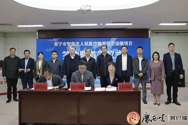 广西红十字基金会、广西中医药大学附属瑞康医院、广西元鹰航空技术有限公司三方共同签署智能无人机医疗物资低空运输合作协议。广西红十字基金会 供图