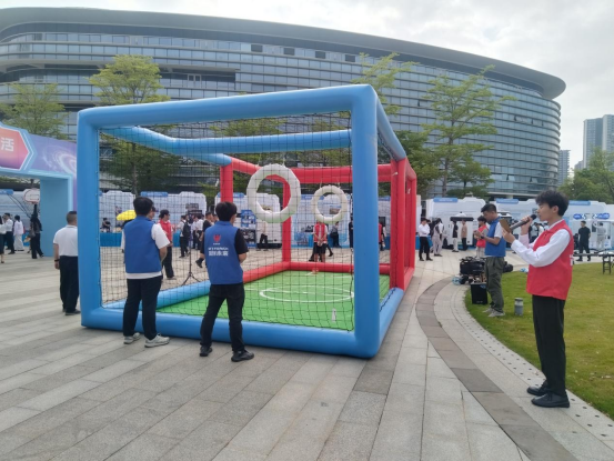 作为本次大会的特色表演环节,朱雀云辰带来的无人机足球比赛成为现场人气最高的互动项目。数架小型竞技无人机化身“空中足球”,在专业飞手的精准操控下,穿梭于特制球门之间,完成传球、拦截、射门等一系列高难度动作,将科技感与竞技性完美融合,为观众呈现了一场别开生面的“空中足球盛宴”。